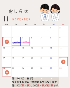 ②11/3(月・祝)11/23(日・祝)、24(月・祝)